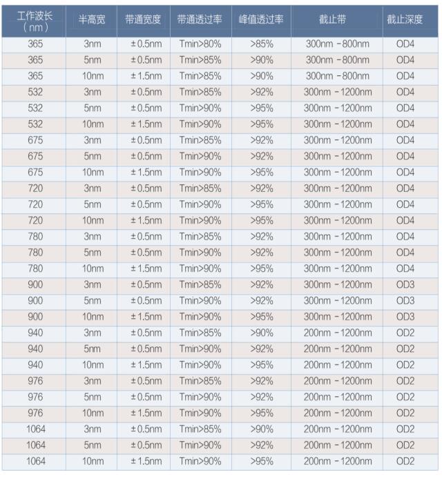900nm 帶通濾光片 1064nm 窄帶濾光片 365nm 窄帶濾光片 777.4nm 帶通濾光片