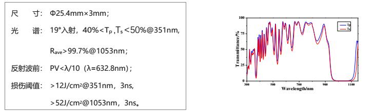 基頻高反,三倍頻部分反射 1053nm 部分反射 傾斜入射寬帶部分反射